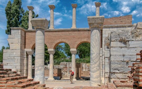 This image depicts bright blue newly formed stars that are blowing a cavity in the centre of a fascinating star-forming region known as N90. The high energy radiation blazing out from the hot young stars in N90 is eroding the outer portions of the … [Read more]